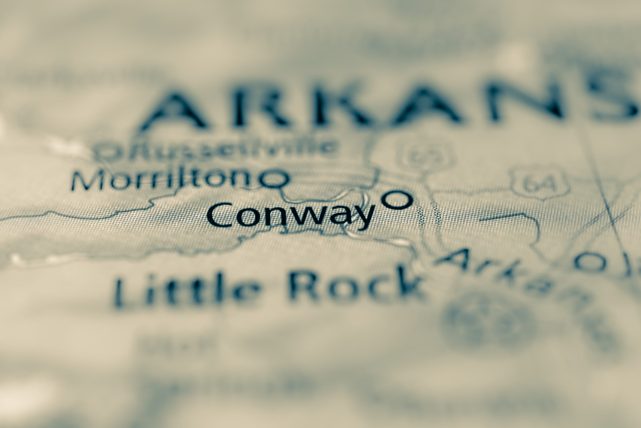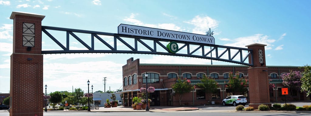 Turn north off Oak Street directly under the Historic Downtown Conway sign. The church is behind the Chamber building.